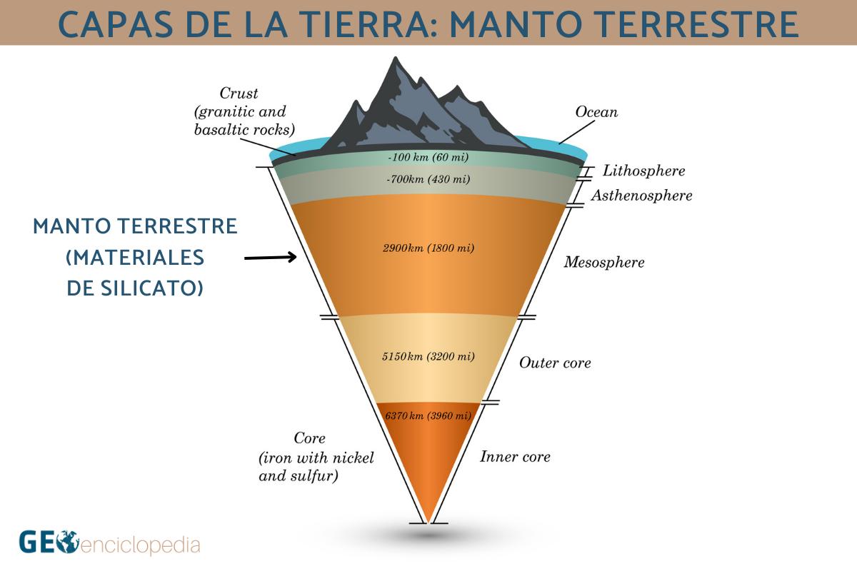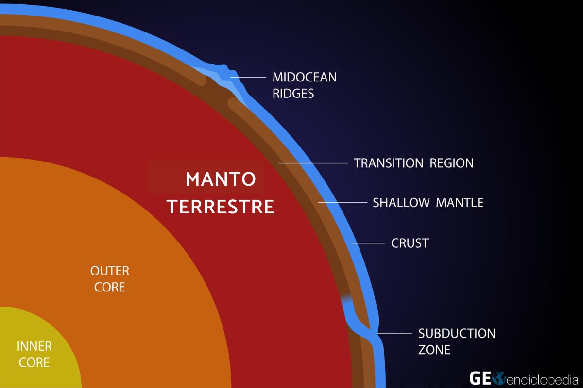 El manto de la Tierra es la capa más extensa de la geosfera. Es la región de la geosfera entre la discontinuidad de Mohorivicic hasta los 2.900 km de profundidad. En ella, acontecen una serie de sucesos que determinan la dinámica terrestre y marcan la tasa de reciclaje de las capas más superficiales del planeta. Combinando diversas técnicas de la prospección geofísica con la observación de materiales procedentes del manto puede intuirse su composición y estructura. En el siguiente artículo de GEOenciclopedia, trataremos de responder a la incógnita de qué es el manto terrestre, su estructura y función, entre más detalles interesantes.