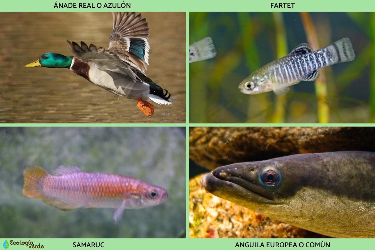- Fartet (Aphanius iberus) y samaruc (Valencia hispanica): se trata de dos especies de peces que se encuentran en peligro de extinción y que son endémicas de la península ibérica.
