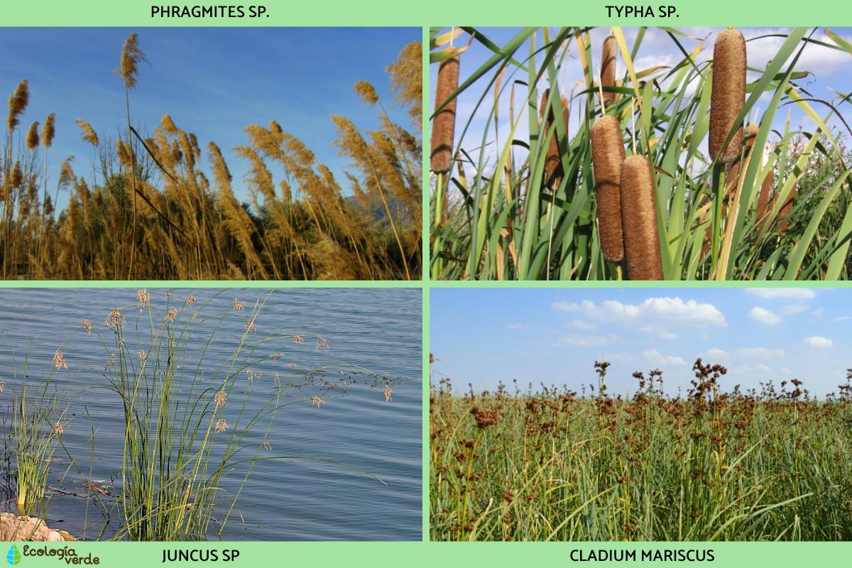 Entre la flora presente encontramos vegetación típica de ecosistemas húmedos como, por ejemplo: