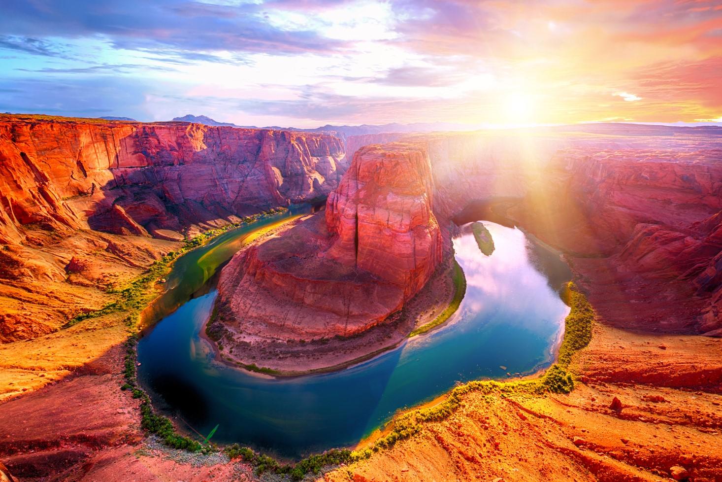 - Meandro Curva de la Herradura (conocido en inglés como Horseshoe Bend). Posiblemente se trate del meandro más famoso del mundo. Se halla en Arizona, Estados Unidos y por el escurre el río Colorado.