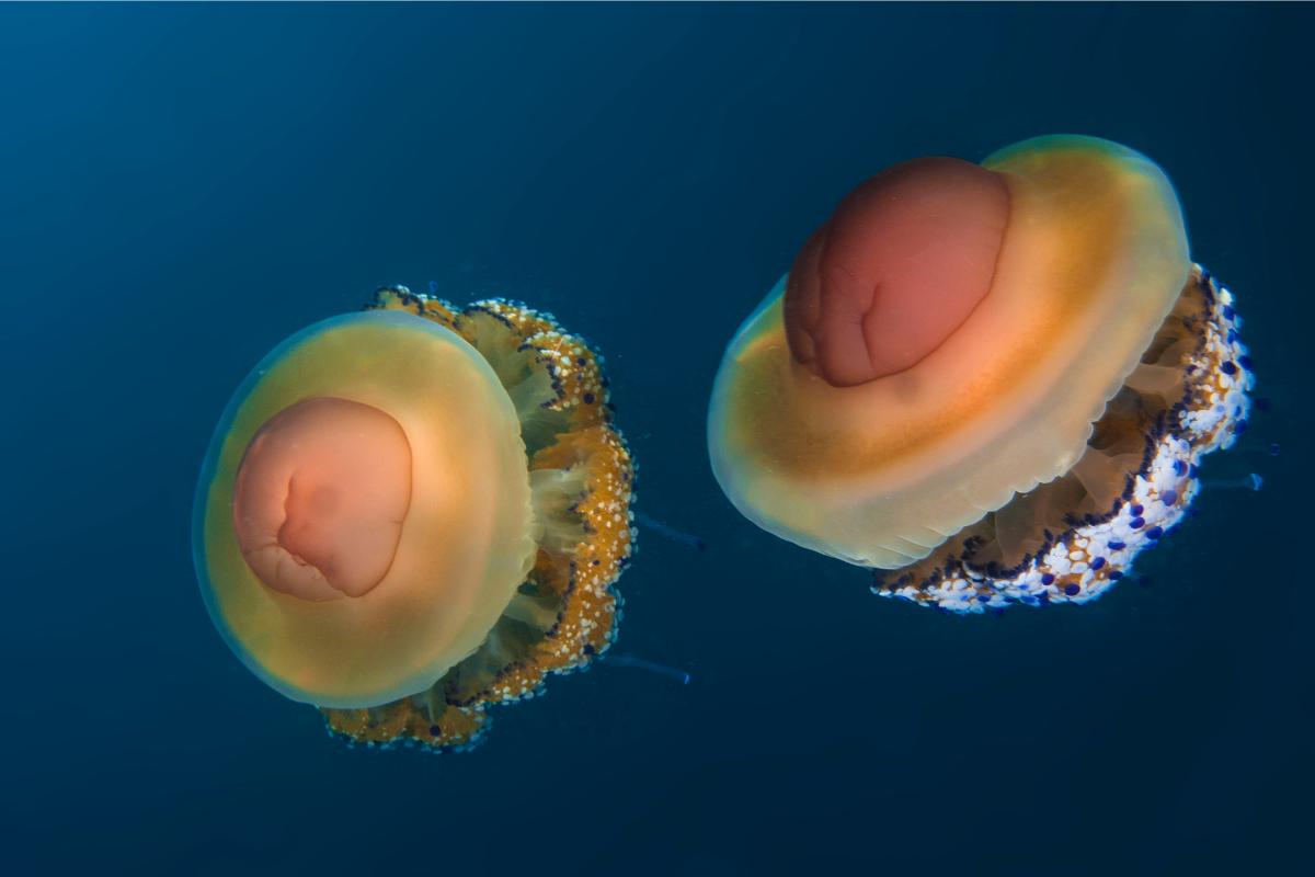 - Esta medusa es de color amarillo fuerte y naranja, y su forma nos recuerda exactamente a un huevo frito.