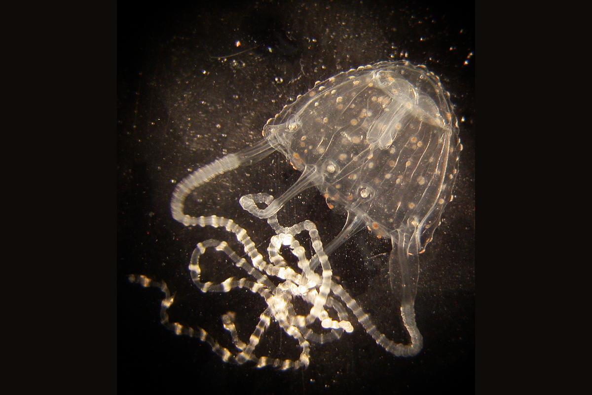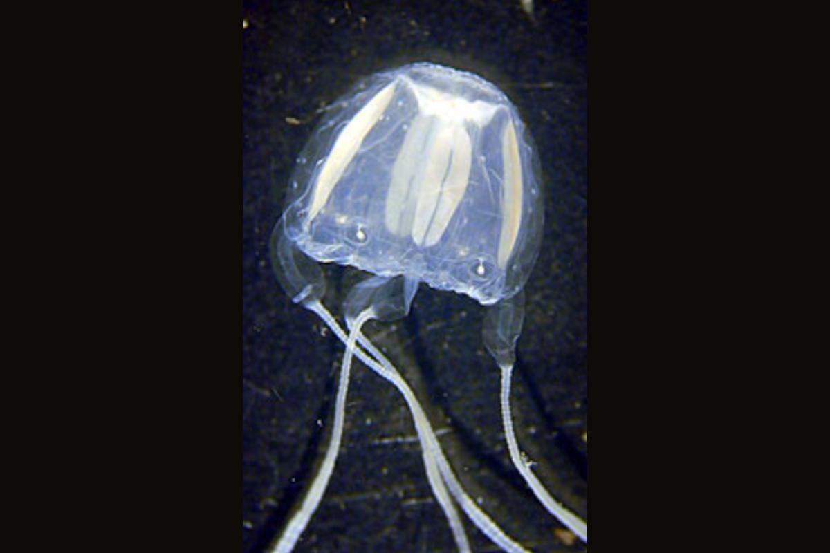 Carukia barnesi, llamada popularmente medusa irukandji, tiene cuerpo en forma de cubo, de aquí que pertenezca al orden Cubomedusae.