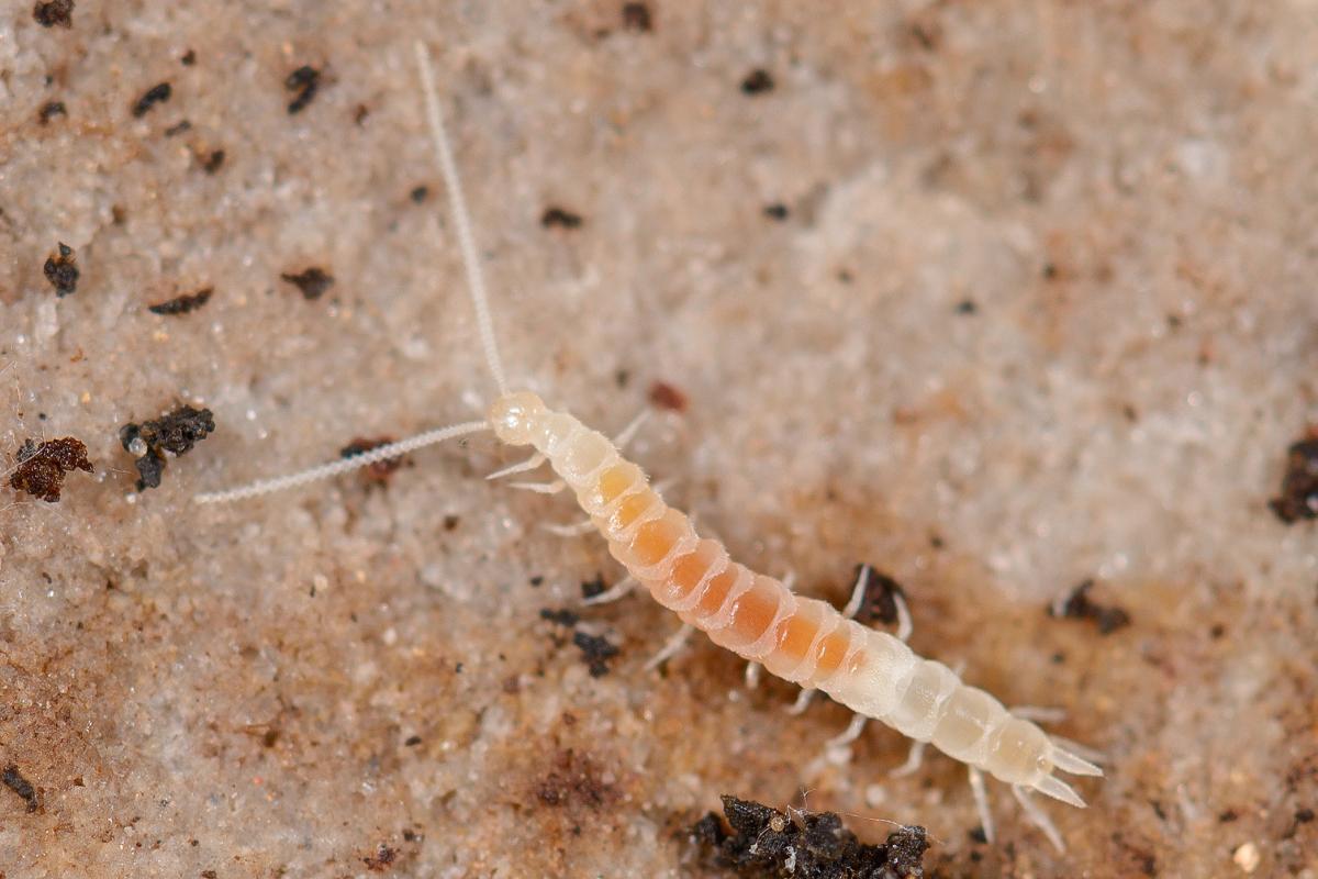 Estos artrópodos son miriápodos, lo que quiere decir que son parientes de los ciempiés. A diferencia de estos últimos, los sínfilos no son venenosos, son pequeñísimos y miden entre 0.5 a 10 milímetro. Carecen de ojos, son muy rápidos y son de color blanco.