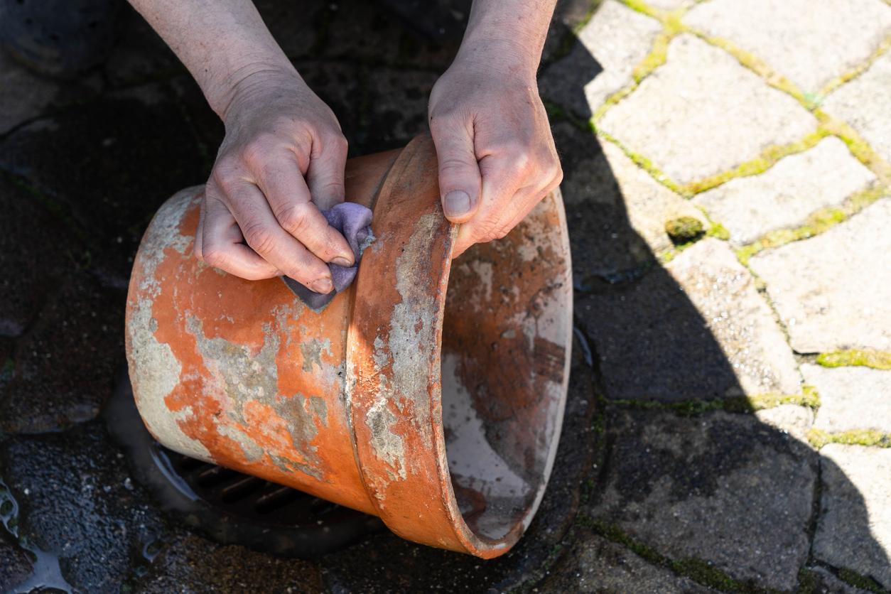 Si hay moho en la maceta propiamente, será necesaria una limpieza a fondo. Empieza por extraer el cepellón de la maceta y sacúdele con cuidado toda la tierra posible de las raíces. Si estas están afectadas por el moho, también puedes realizar una poda sobre ellas. Tras esto, será necesario usar nuevo sustrato y un nuevo recipiente, o desinfectar a fondo la maceta.