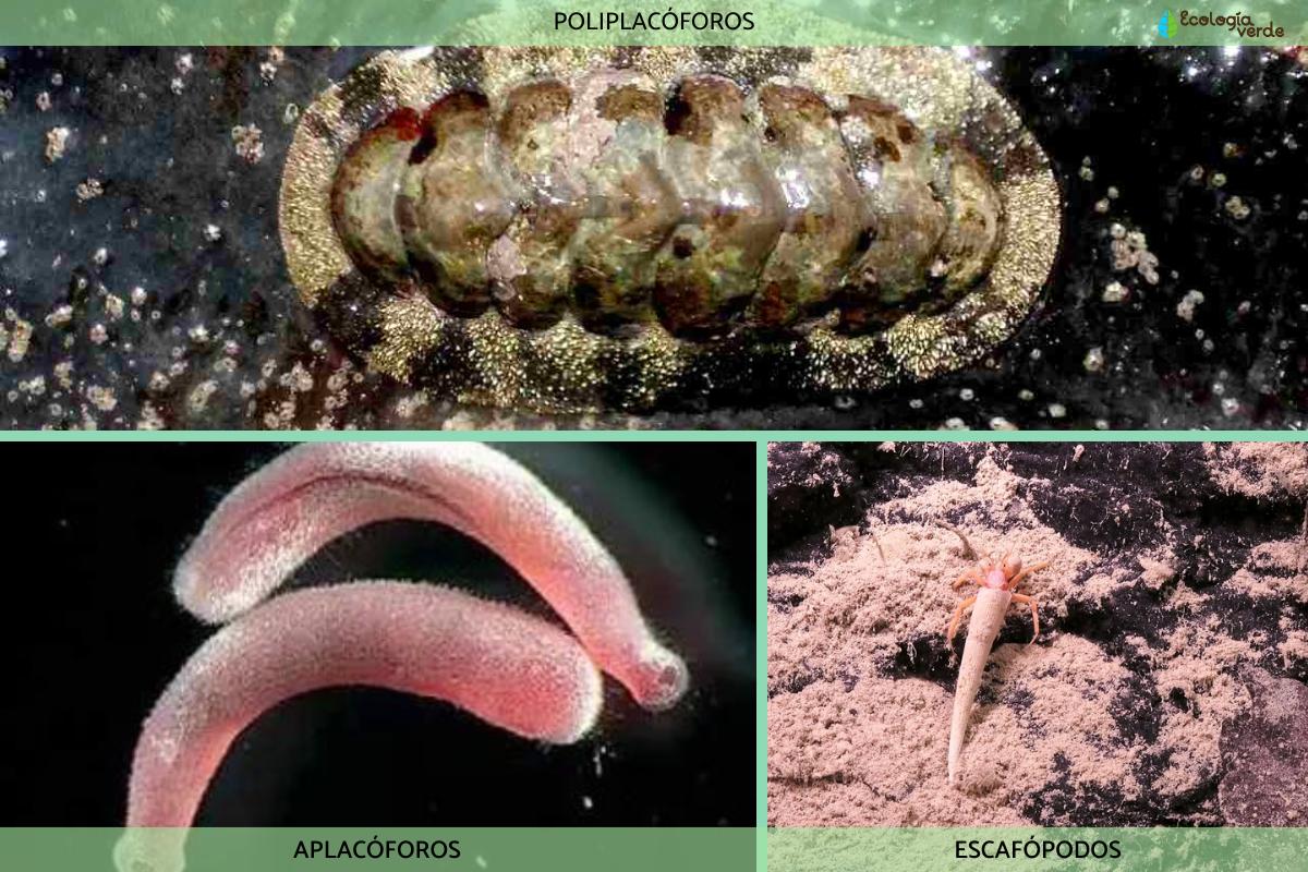 La sistemática actual reconoce 7 clases de moluscos: poliplacóforos, monoplacóforos, aplacóforos (que incluyen caudofoveados y solenogastros; reconocidos como dos clases independientes dependiendo de la bibliografía consultada), escafópodos, pelecípodos, gasterópodos y cefalópodos. Así, estos son los 7 tipos de moluscos y sus características: