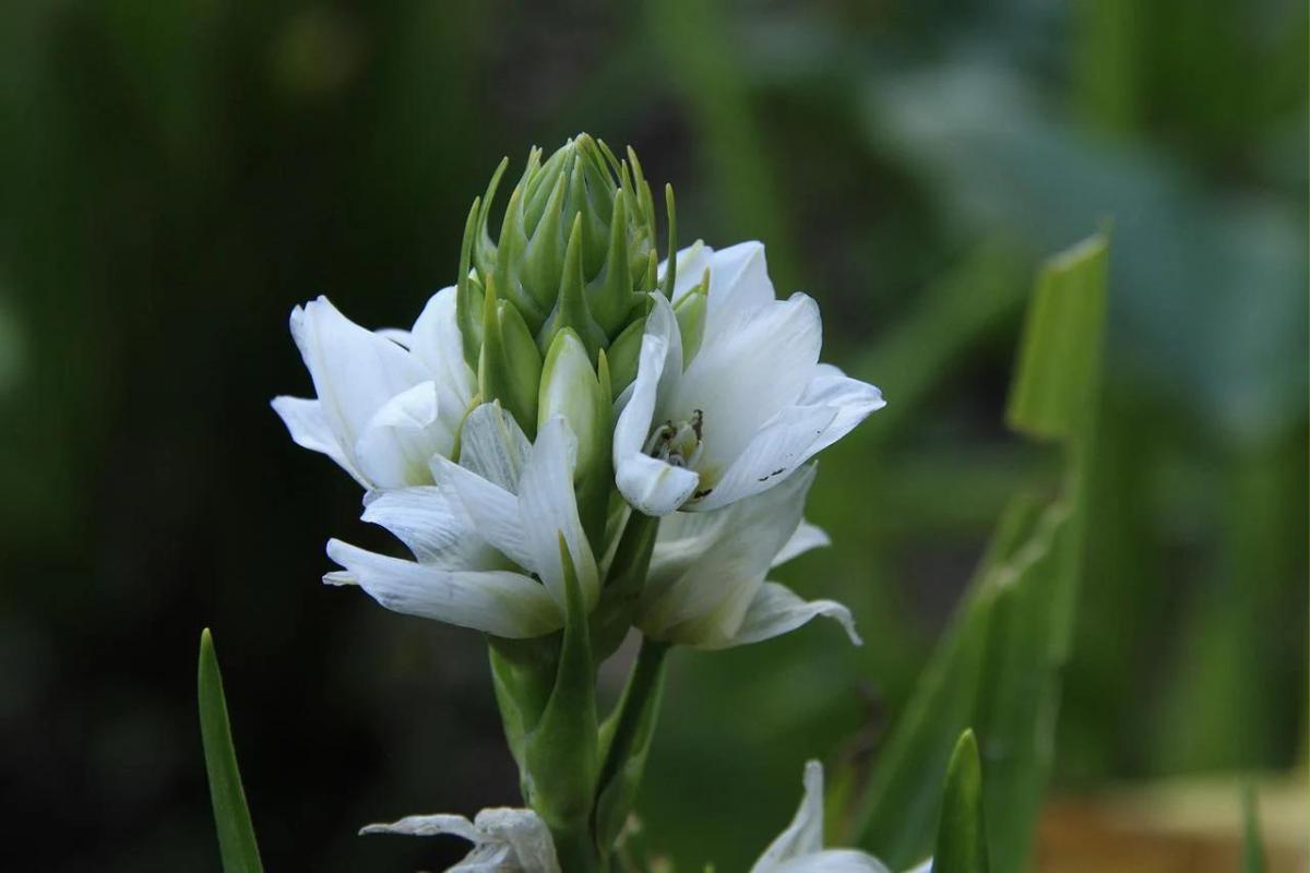 La planta puede llegar a superar el metro de altura y sus espigas florales crecen hasta los 45 cm, dando flores blancas o en ocasiones rosadas, y llaman la atención sus hojas de verde brillante. La floración, que es nocturna y se da entre finales de primavera y verano, suele prolongarse hasta bien entrado el otoño si las temperaturas acompañan, y sus flores son muy utilizadas ornamentalmente como flor cortada, ya que pueden llegar a soportar hasta 40 días antes de marchitarse.
