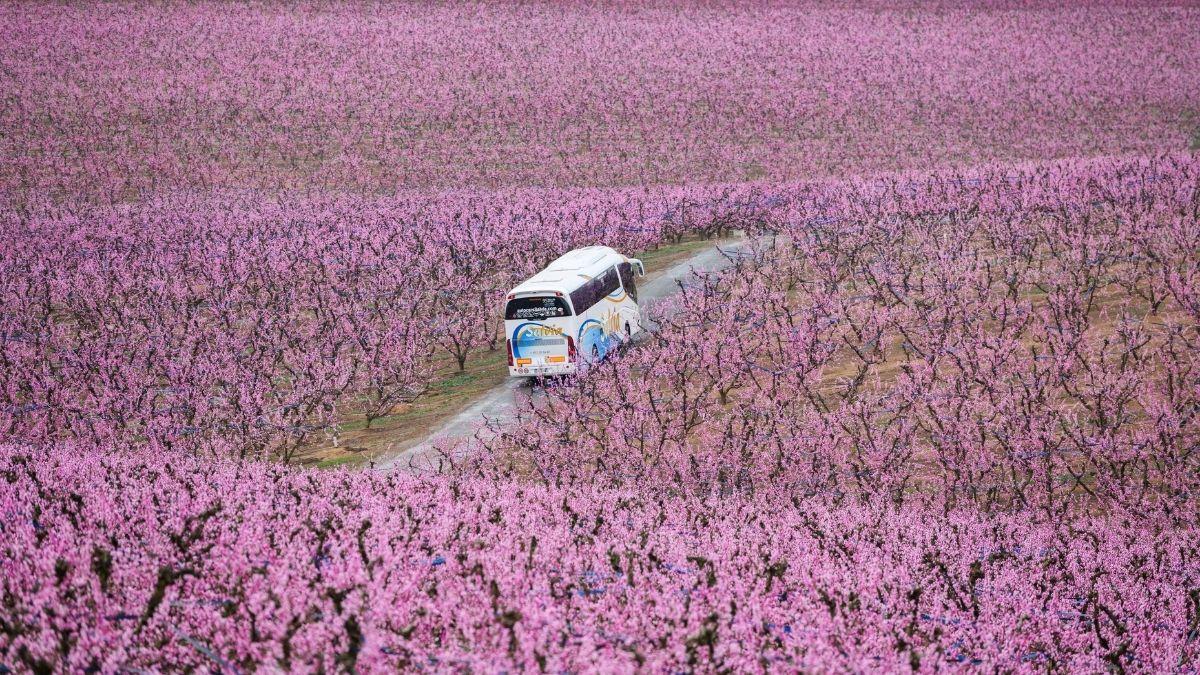 En este municipio se concentran más de 4.000 hectáreas de frutales, principalmente melocotoneros, que florecen casi al mismo tiempo entre finales de febrero y marzo. El resultado es una imagen sorprendente que muchos describen como un auténtico “mar rosa”.