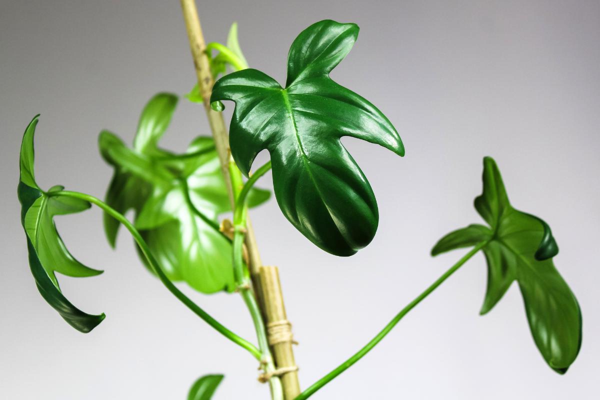 Es una planta tropical de hojas lustrosas. Hay muchas variedades de filodendros, pero una de las más populares y llamativas es el filodendro Brasil. Las hojas son de color verde limón con verde oscuro, de crecimiento colgante. Para mantener el color claro, debes tenerla en un lugar donde reciba luz filtrada brillante. Otra variedad es la mano de tigre (Philodendron radiatum), que tiene grandes hojas lobuladas, muy atractivas.