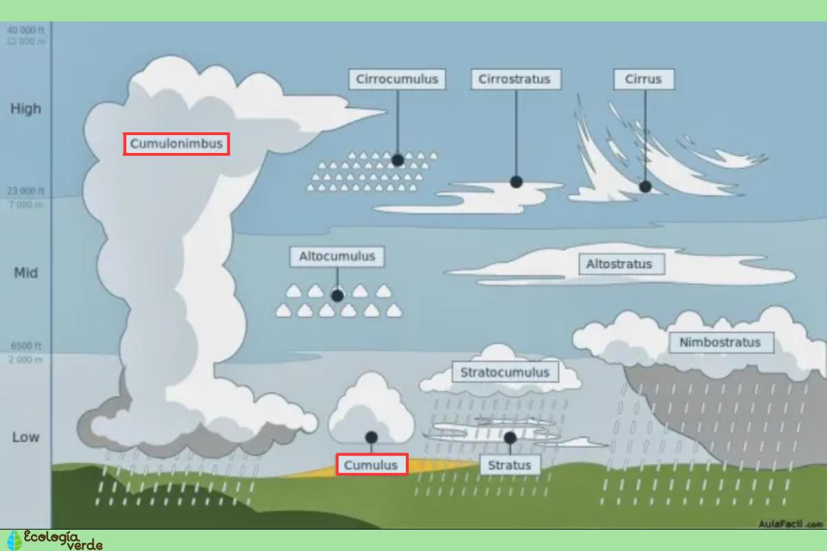 - Corrientes ascendentes: estas nubes se forman a partir de corrientes ascendentes de aire cálido y húmedo. A medida que el aire asciende, se enfría y el vapor de agua contenido en él se condensa para formar la nube.