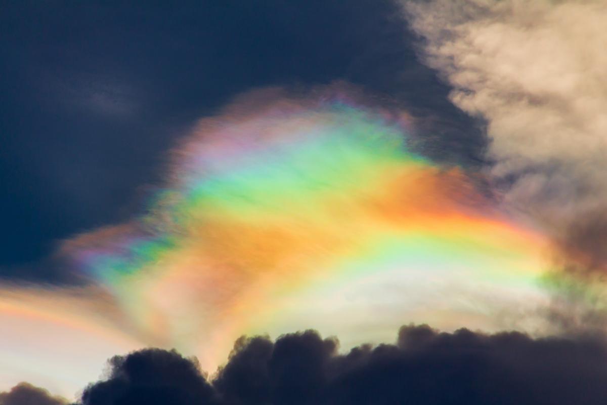Las nubes iridiscentes son fenómenos atmosféricos fascinantes que se producen cuando la luz del sol interactúa con las minúsculas gotas de agua o cristales de hielo presentes en las nubes. Este efecto óptico crea una gama de colores brillantes y vibrantes en el cielo, similar al arcoíris, pero en forma de parches o bandas en las nubes.