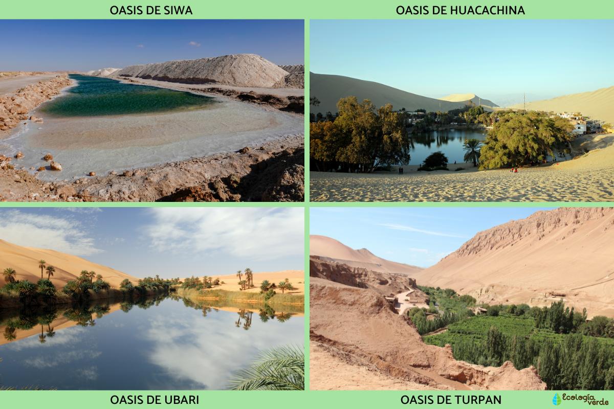 Los oasis han sido esenciales para la supervivencia de muchas civilizaciones a lo largo de la historia, ya que sirven como puntos de descanso y abastecimiento para viajeros, comerciantes y comunidades que habitan regiones desérticas. En ellos es común encontrar palmeras, arbustos y otros tipos de flora adaptada a las condiciones del clima.