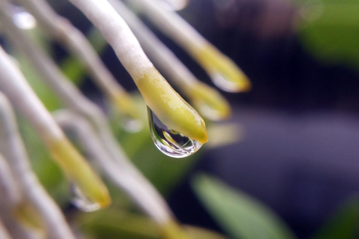 Es importante mencionar que las orquídeas en agua son propensas a que les de pudrición de corona, que es la proliferación de hongos y bacterias en la base de las hojas por exceso de agua. Por esta razón, hay que revisar continuamente que nuestra orquídea en agua esté bien, buscando que las hojas no se estén mojando y estén firmes y verdes, con posibles tallos florales nuevos, y las raíces también estén verdes. Si no es así, debe regresarse al sustrato seco.