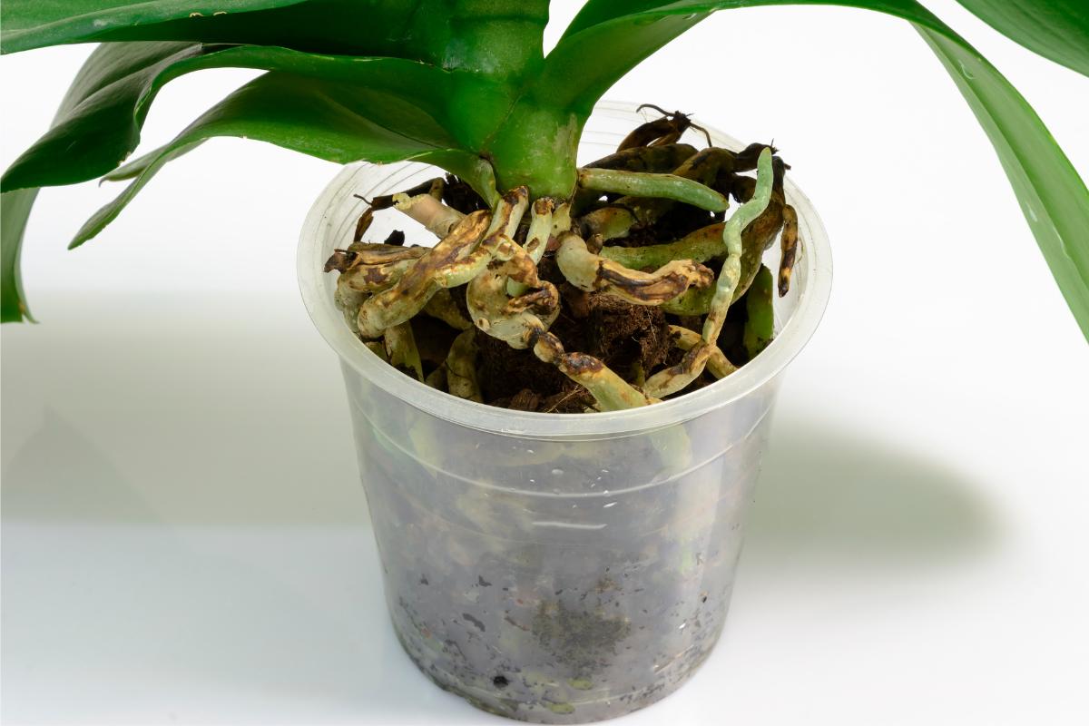 Antes de pasar tu orquídea al agua, debes lavar bien la raíz para eliminar suciedad. Al sacar a la orquídea del sustrato sólido, que normalmente es corteza de árbol o fibra de coco, sacude ligeramente la planta para eliminar residuos, y después lava con agua. Si hay raíces secas o podridas, este es el momento para cortarlas con unas tijeras esterilizadas para empezar con una planta completamente sana. Si hay raíces podridas, acelerarás el deterioro del agua. Aquí puedes conocer Las mejores tijeras de podar.