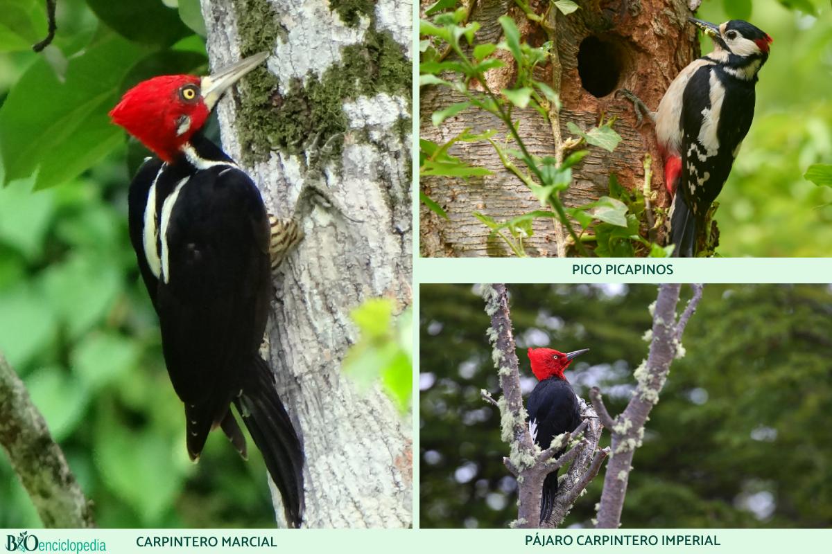 Dentro de las subfamilias mencionadas anteriormente, encontramos muchas especies. Estos son algunos ejemplos de especies de pájaros carpinteros: