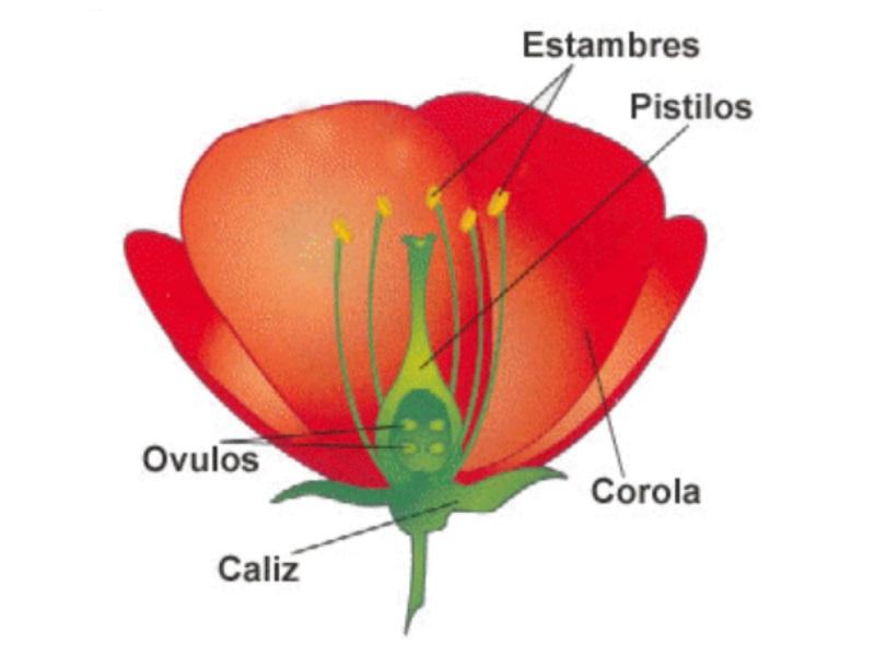 Aquí puedes aprender sobre la Reproducción de las plantas y aquí abajo puedes ver un esquema de una flor y sus partes.