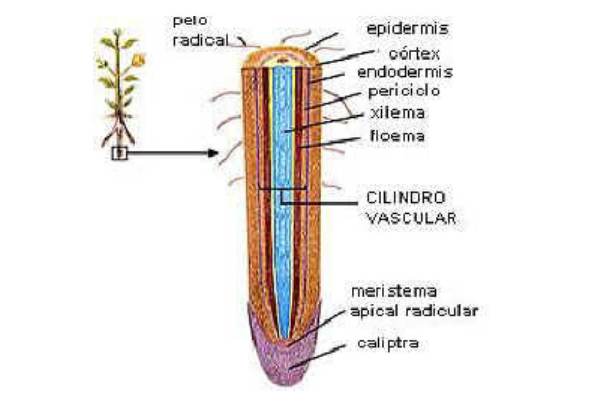 En el esquema de la portada podrás ver bien estas partes de las raíces bien diferenciadas. Estas son las partes de la raíz más generales, pero en un sentido más específico, las partes de esta se diferencian de otra forma, más concretamente, según los tipos de tejidos de las raíces: