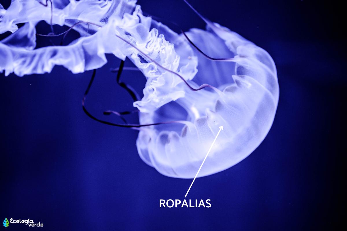 Están en el borde de la umbrela y tienen función sensorial. Se componen de un ocelo que sirve para detectar cambios en la luz circundante, y de un estatocisto que sirve como órgano de equilibrio para que la medusa pueda orientarse, especialmente en términos de profundidad. El nivel de especialización del ocelo depende de la especie, teniendo las cubomedusas, como las avispas de mar, los ocelos más avanzados.