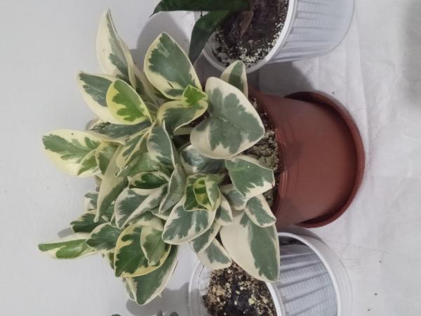 Aunque su nombre científico es Peperomia obtusifolia, habitualmente nos referimos a ella como peperomia veriegada o simplemente peperomia, pese a que no es la única de su género, que cuenta con más de 1.000 especies. Se trata de una planta de porte inicialmente arbustivo que proviene de Sudamérica y que conforme crece va dejando que sus tallos se inclinen y pierdan verticalidad, siendo esto parte del proceso natural de desarrollo de la planta.