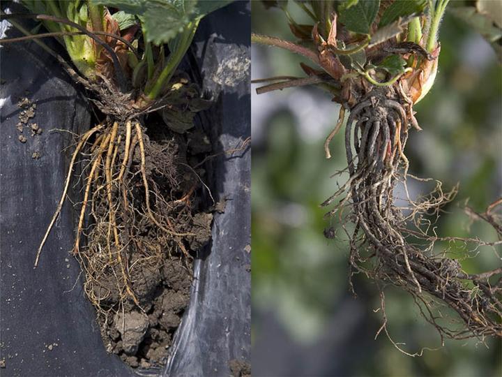 El patógeno que la provoca es excepcionalmente resistente y puede sobrevivir largas temporadas en el mismo suelo o bajo este. Ataca a las plantas desde sus raíces y se extiende desde ahí hacia el cuello de la misma, dañando la planta a su paso.
