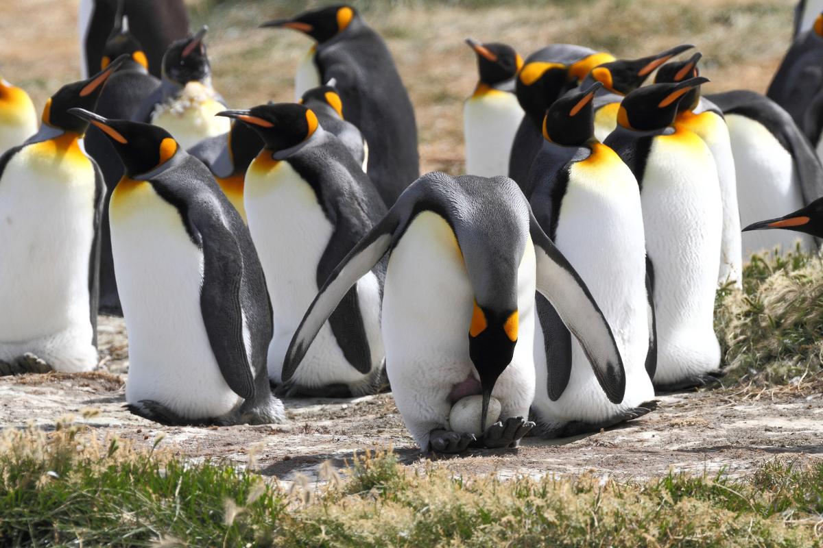 - Se reproducen entre septiembre y noviembre, una vez al año. El ciclo comienza con una muda de un mes de duración, y es entonces cuando empieza el cortejo. Cabe aclarar que no todos lo pingüinos rey ponen al mismo tiempo, sino que tienen ciclos asincrónicos.