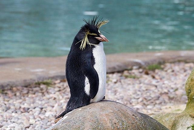 El pingüino de Antípodas o pingüino de Sclater (Eudyptes sclateri) es otra especie del género Eudyptes pero, a diferencia del anterior, este se encuentra en peligro de extinción. Su principal amenaza es el cambio climático. Lo que lo hace único a este pingüino, es la presencia de dos crestas amarillas sobre sus ojos y también su distribución, ya que se encuentra solamente en los archipiélagos subantárticos de Nueva Zelanda, sin embargo, en ocasiones se lo ha visto cerca de las Islas Malvinas.