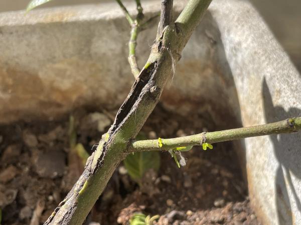 Este es el tallo de un jazmín. Se le caen hojas y los pequeños pimpollos