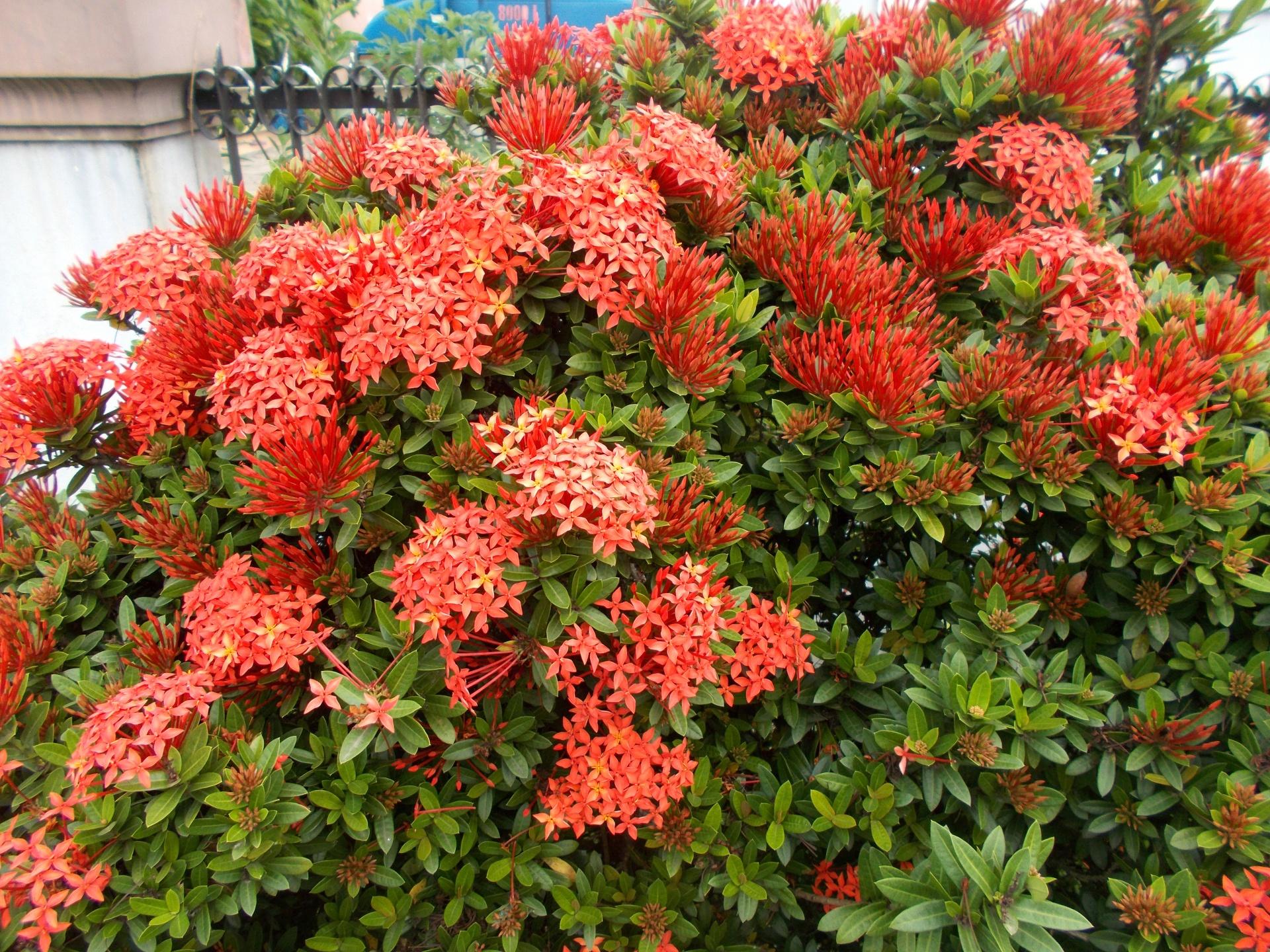 - Ixora coccinea: esta es con diferencia la ixora más representativa del género y la más extendida de todas. Por lo general alcanza el metro de altura, aunque se han conocido ejemplares que han llegado a desarrollarse hasta los tres metros.