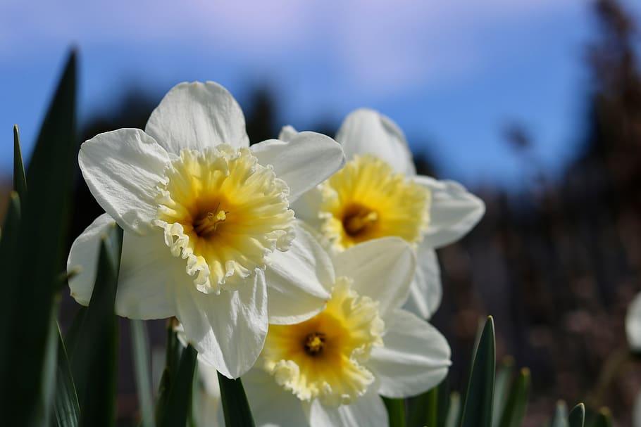 Los narcisos, de nombre científico Narcissus, son todo un género de las Amaryllidaceae que tiene su origen en Europa y la cuenca mediterránea, aunque algunas variedades son autóctonas de Asia. Se trata de unas plantas que dan unas grandes y muy bonitas flores blancas o amarillas, muy características y valoradas por su vistosidad.