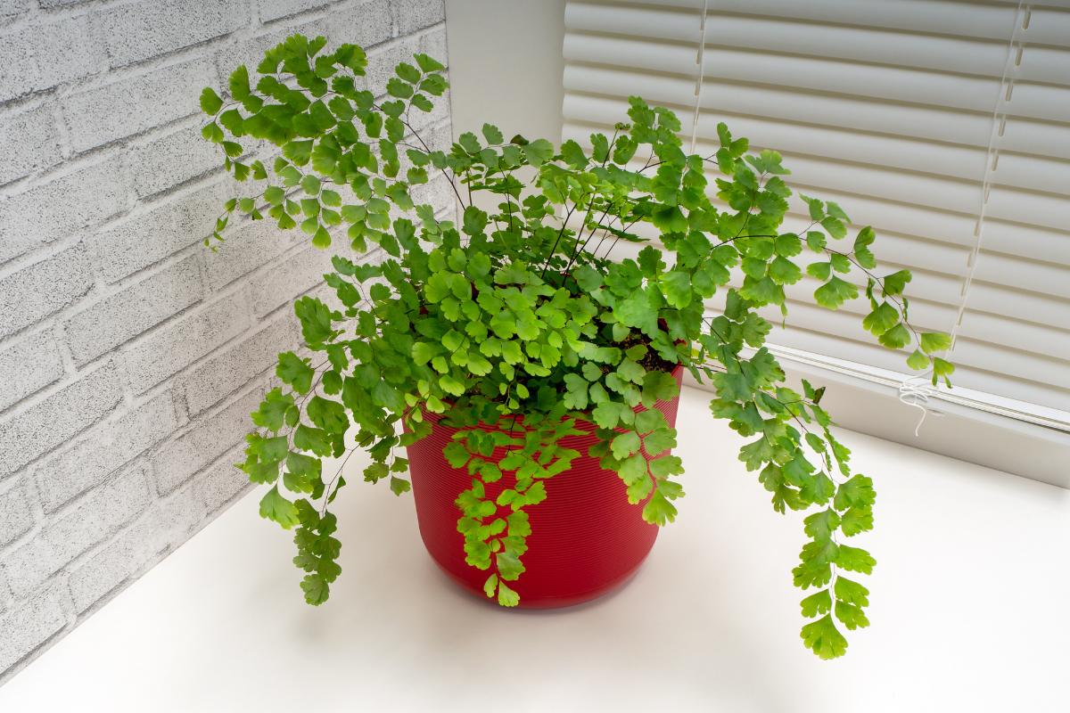 Es otra opción de helecho, con frondas más pequeñas. Destaca que cada hoja es lobulada, y que el tallo es de color negro y es delgado, como si fuera un cabello. Las frondas llegan a ser largas, dando ese aspecto colgante. Es una planta de semisombra, que puedes tener en interior. Hay que proveerle buena humedad para que prospere, sin llegar a encharcar la maceta.