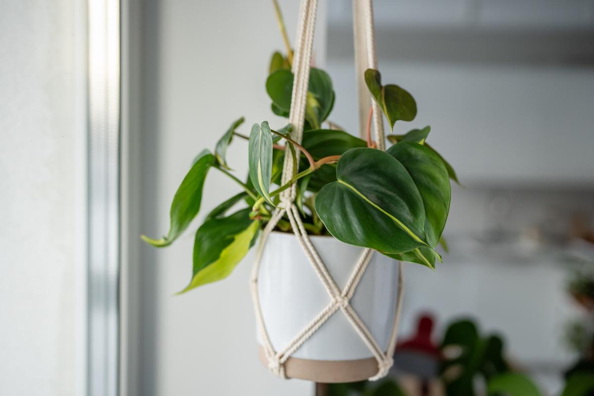 Esta es la planta colgante de interior más común, frecuentada por sus hojas llamativas de apariencia tropical, que cuelgan de tallos que pueden ser colgantes o trepadores. Tolera poca luz, pero sí debe de recibir algo durante el día para prosperar.