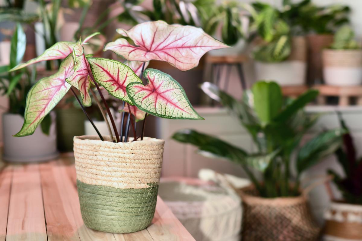 El caladio es quizá una de las más espectaculares plantas con hojas acorazonadas, ya que se han creado muchos tipos especiales de ellas, con tonalidad preciosas combinadas, entre verde claro y oscuro, con blanco, rosas, rojos, burdeos y violetas, creando fantasías increíbles. Seguro querrás tener cualquiera de sus versiones en cuanto la veas.