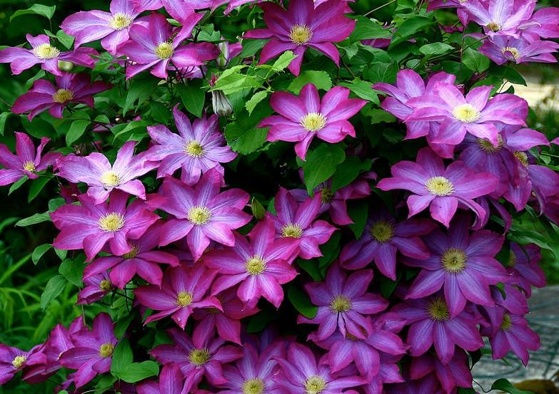 También llamada clemátide, se trata en realidad de todo un género de plantas trepadoras de gran velocidad de crecimiento. Cuenta con una gran cantidad de especies y cultivares y se encuentra de forma natural en casi cualquier región templada del mundo. En el jardín, resiste muy bien los cambios de temperatura y apenas necesita cuidados, siendo la única excepción el hecho de que necesita un considerable nivel de humedad.
