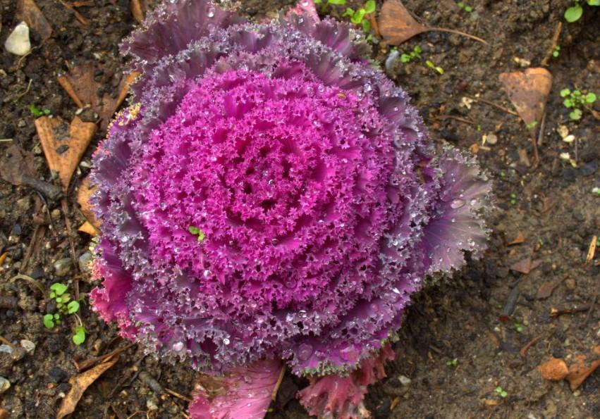A pesar de lo que se puede pensar, este tipo de col no comestible tiene un enorme valor decorativo gracias a sus hojas de tonos blancos, rosas y morados. Se le llama también col silvestre o col ornamental, aunque su nombre científico es Brassica oleracea. Soporta las heladas como pocas plantas y solo necesita un suelo rico o aporte de fertilizante.