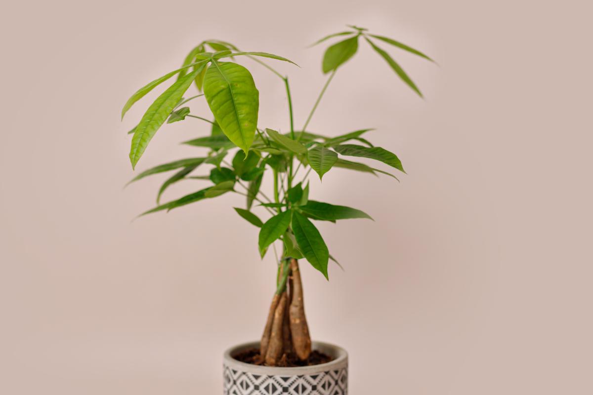 Otra de las plantas de interior grandes y resistentes es el castaño de agua, el árbol del dinero o Pachira aquatica. Se trata de una planta de interior popular por su tronco trenzado y sus grandes hojas verdes brillantes. Es resistente, porque requiere poca agua, y también se asocia con la atracción de buena fortuna según el feng shui.