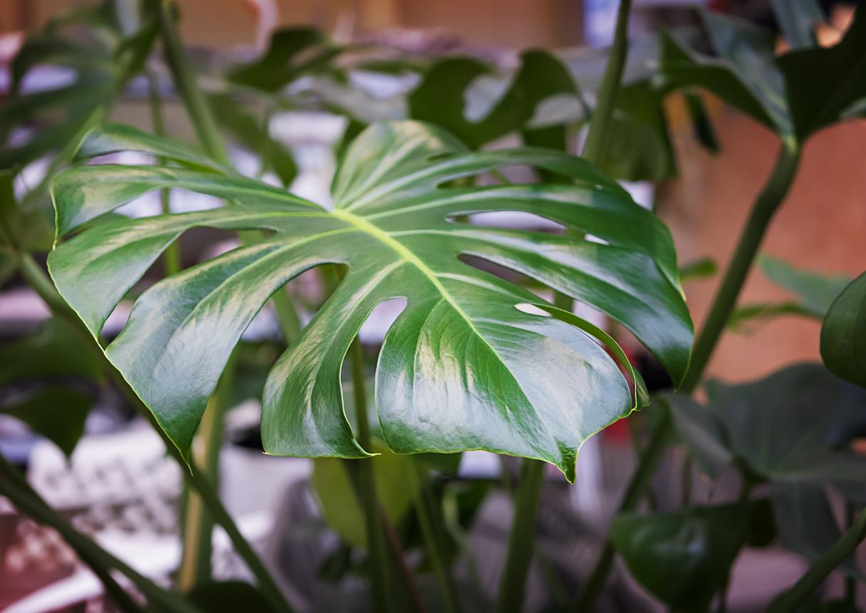 Una de las plantas de interior grandes, que obviamente en un exterior con clima adecuad crecerá mucho más, es la asombrosa Monstera Deliciosa, costilla de Adán, cerimán o planta esqueleto. Necesita poca luz directa, así que con estar en una habitación iluminada con luz natural tendrá suficiente, sin necesidad de estar pegada a una ventana. Lo más llamativo de esta planta son sus enormes hojas con agujeros y de un color verde intenso.