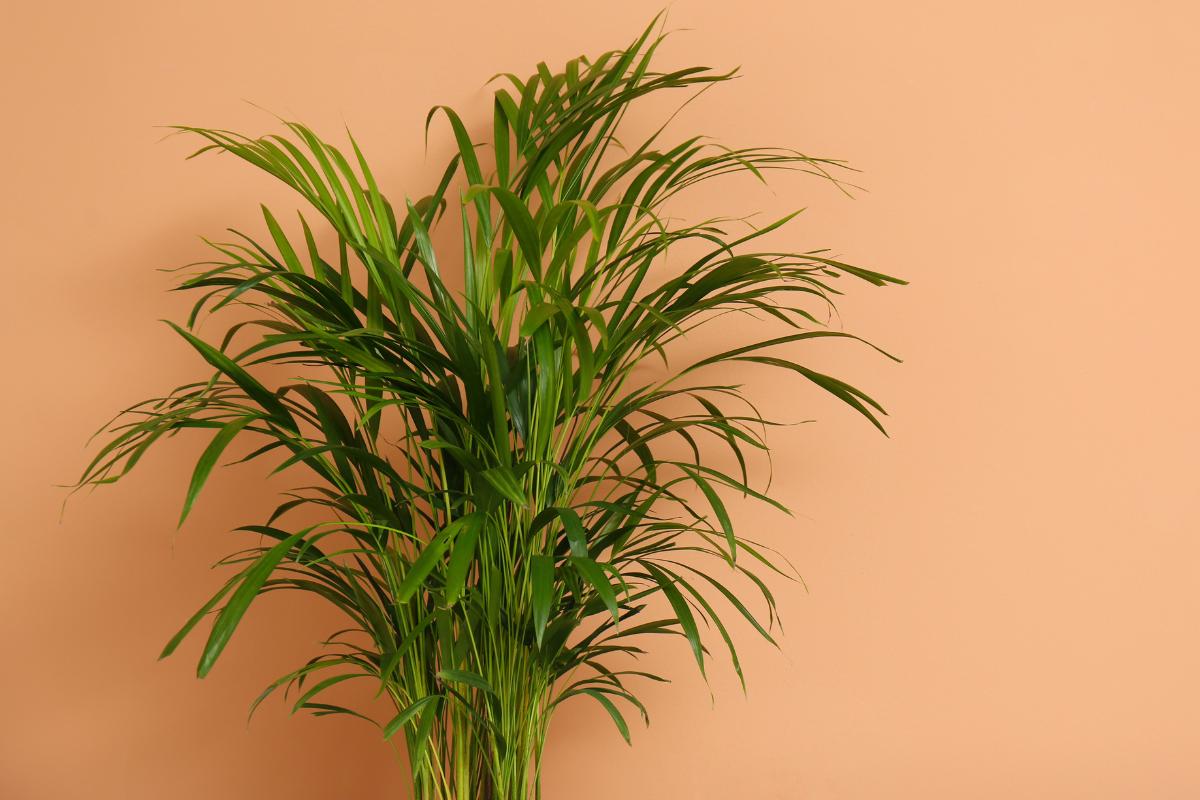 Esta es una planta grande y resistente para interiores que también es llamada palmera amarilla y palma de frutos de oro (Dypsis lutescens). Es una planta tropical de interior con hojas largas y delgadas en forma de plumas, de color verde brillante. Es fácil de cuidar, necesita luz indirecta y riego moderado, y también es valorada por su capacidad para purificar el aire.