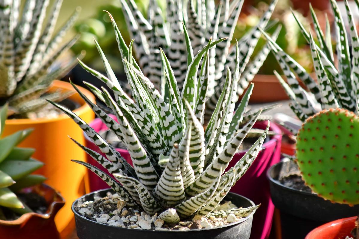 La planta cebra (Haworthia attenuata) es una buena opción cactus como plantas de interior sin flor. La planta cebra le aportará originalidad a tu hogar ya que cuenta con líneas que simulan el pelaje de este animal.