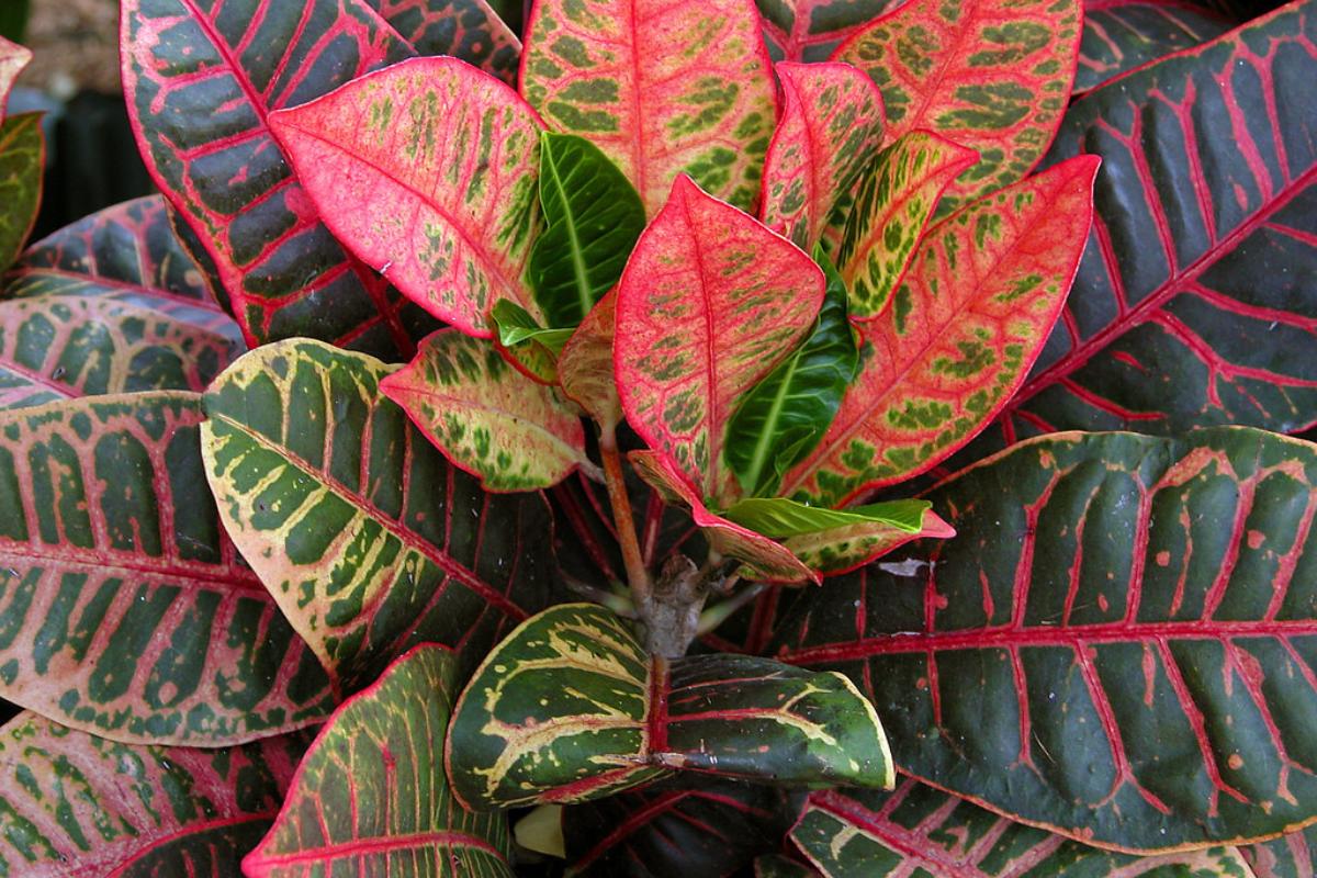 La última de las plantas de interiores sin flores que vamos a presentar es el crotos o crotón. Proviene del sur del Pacífico y necesita una estancia muy luminosa con sol directo, además de una temperatura de entre 18 y 25º C. Al igual que el anterior ejemplo, el crotón es una planta de interior con vivaces colores que le darán luz a tu hogar y un aspecto más relajado. Sus hojas combinan los colores amarillo, rojo, naranja y verde con todos más oscuros entre el negro y el verde botella.