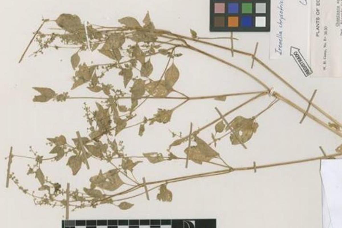 Irenella crhysotricha es una especie herbácea del género endémico ecuatorial Irenella, perteneciente a la familia Amaranthaceae. Habita en los bosques húmedos y secos de las zonas de costa, en un rango altitudinal de 0 - 500 m. En la década de los ochenta se tenía constancia de la existencia de 8 poblaciones, localizadas en su mayoría en zonas protegidas. La fragmentación del territorio y la pérdida de hábitat constituyen dos grandes amenazas que ha llevado a esta especie al peligro de extinción.