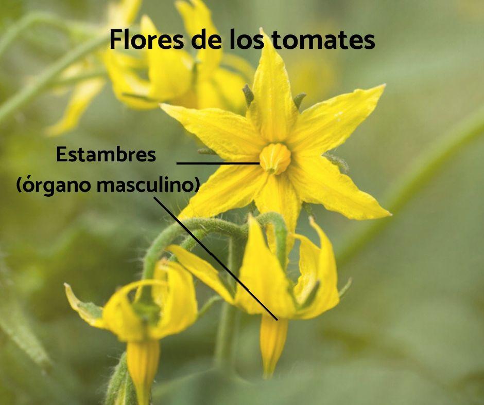En el caso de los tomates, de nombre científico Solanum lycopersicum, hablamos de una de las plantas más conocidas a nivel mundial. Sus flores son hermafroditas y se autofecundan. No produce néctar, pues no necesita atraer polinizadores, y sus estambres son de gran tamaño y forman un tubo cerrado que envuelve el pistilo, asegurando la fecundación.