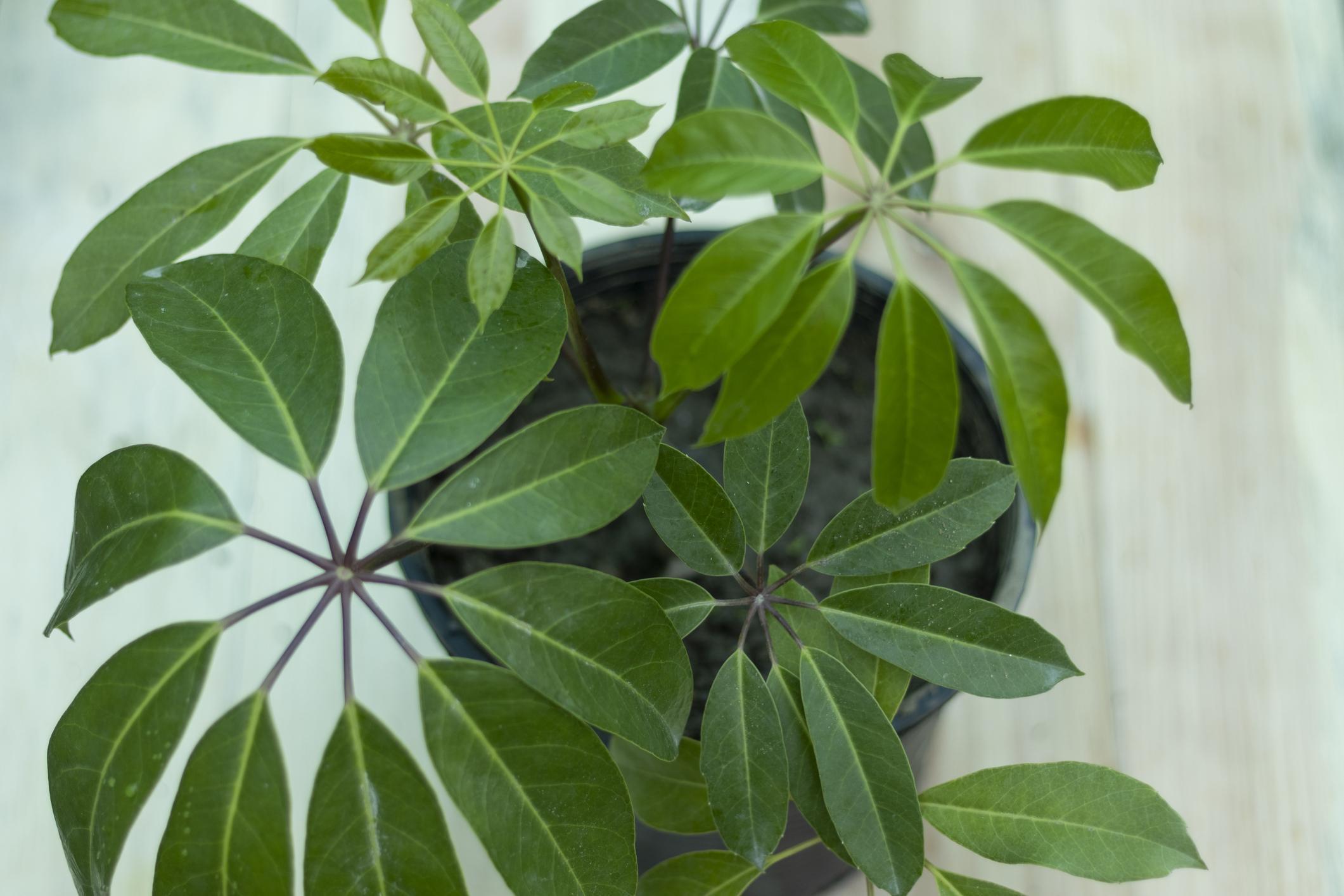 - Árbol o planta paraguas (Schefflera actinophyla)