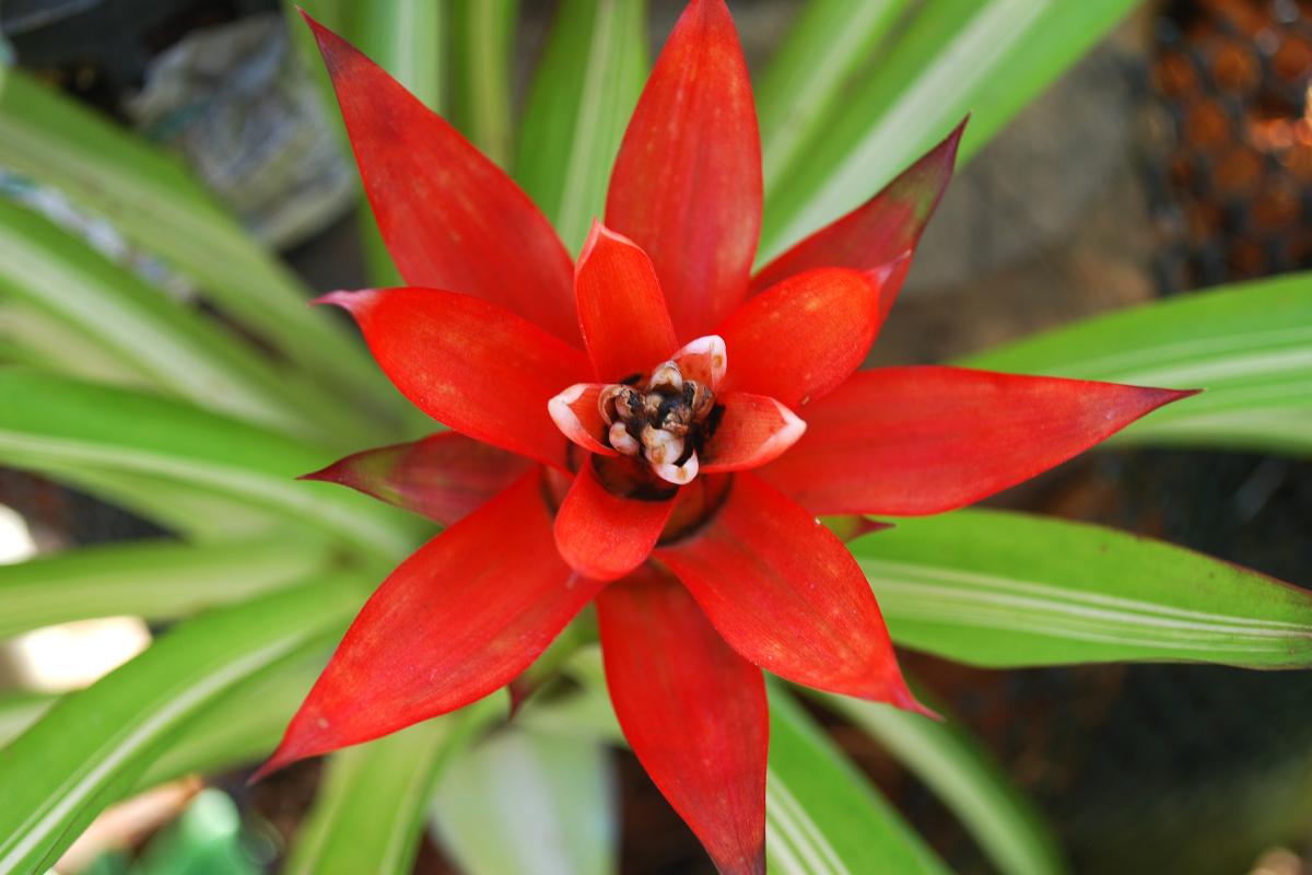 La bromelia brinda una flor roja de profundo cáliz, pero si está en completa sombra es muy posible que no la muestre tal cual es. Esta planta crece bien en interiores con poca luz, siempre y cuando no se ahoguen sus raíces, y su sustrato sea más bien arenoso. Es originaria de América y resulta una planta de fácil cuidado y muy resistente al cambio de ambiente.