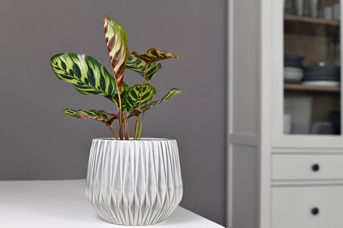 La calatea es una planta que sí o sí vas a querer tener en tu colección bajo techo. Es atractiva, vistosa, elegante y fácil de cuidar. Hay una amplia diversidad de variedades y estilos de calateas, incluyendo en diversos colores como verdes, con listones rosas o rojos, con listones plateados, blancos o verdes muy claros. Incluso las hay que parecen pintadas con acuarela. Crecen muy bien en interiores y necesitan un ambiente algo húmedo, no frío, y precisan de que sus hojas sean rociadas con agua, ya sea con el spray o con un humidificador que les permita concentrar la humedad en su entorno.