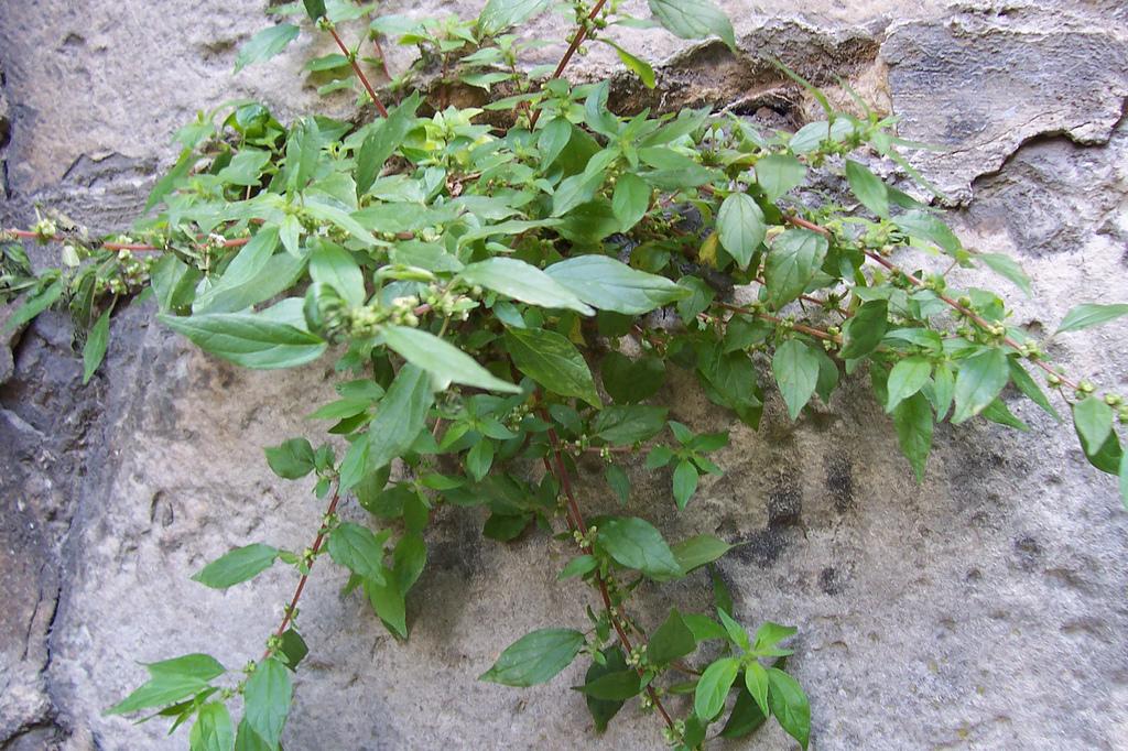 La Parietaria o hierba del muro es una de las plantas más comunes de encontrar por las ciudades del mediterráneo y también en Canarias. Aprovecha las paredes y pequeños recovecos para crecer con libertad, sobre todo durante los meses de abril y mayo. Se caracteriza por su aspecto de ortiga, sus tallos rosados y sus hojas pilosas cuyo polen es conocido por ser unos de los más alergénicos. Esta pequeña oportunista se nutre en muchas ocasiones del orín de los animales para crecer y expandirse por las ciudades.