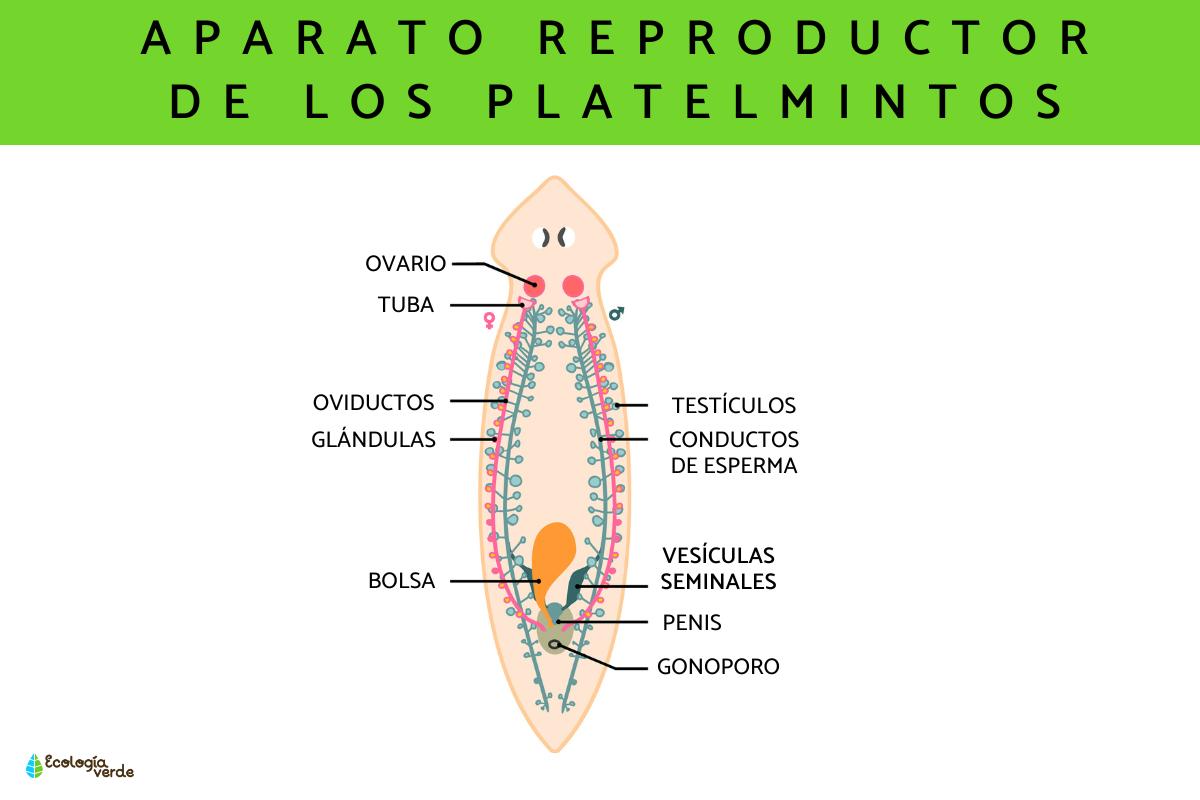 Tal y como hemos mencionado en las características de los platelmintos, la mayoría de ellos son hermafroditas, conteniendo los aparatos reproductivos masculinos y femeninos a la vez. A pesar de ser de los organismos más sencillos que existen, su sistema reproductor es muy complejo. Por ello, a continuación vamos a hablar de los aparatos reproductores del macho de la hembra respectivamente.