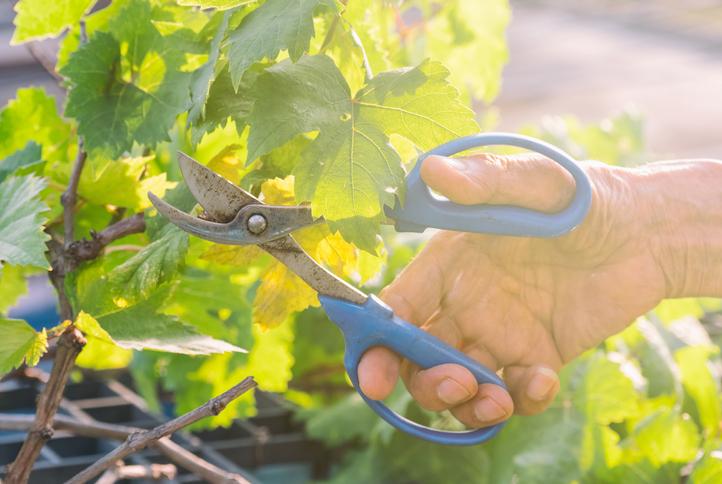 Para seguir estimulando el crecimiento de la parra, debes podar las ramas de madera más viejas que ya no produzcan brotes nuevos. Poda también cualquier rama o parte que parezca estar enferma o en mal estado, y elimina los brotes nuevos que vayan a cruzarse con las ramas principales o puedan entorpecer su crecimiento tapándoles la luz.
