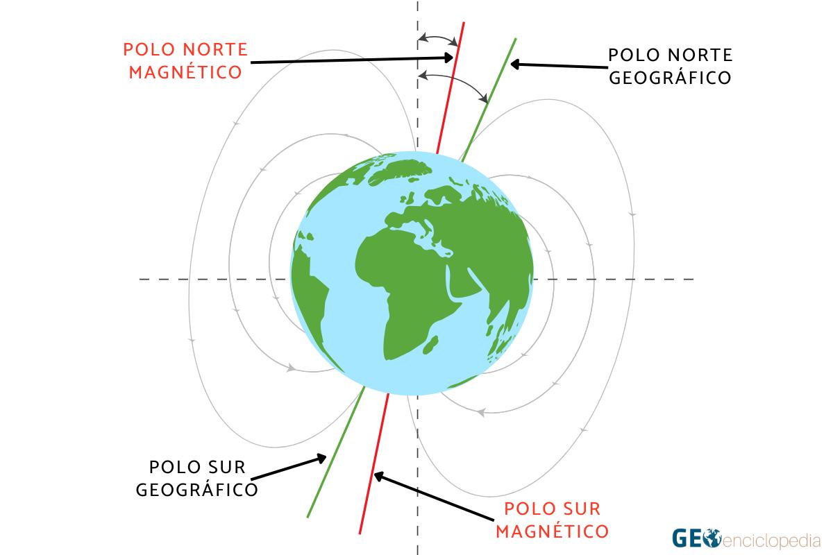 ¿Cuál es la diferencia entre los polos magnéticos y geográficos?