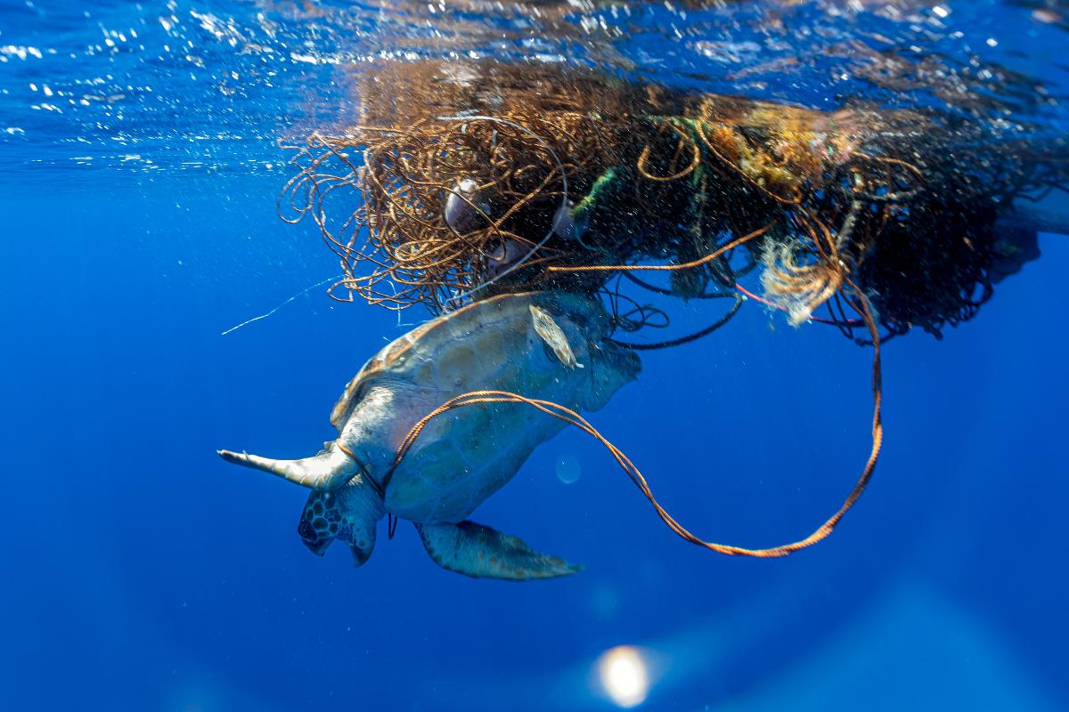 Cada año, un gran número de tortugas caguamas quedan enredadas en desechos marinos; redes de pesca descartadas, cuerdas o plásticos que provocan serias heridas e incluso la muerte del animal. Además, debido a la ubicuidad de la contaminación marina, las tortugas bobas entran en contacto con materiales plásticos (como globos, bolsas o fragmentos) y los ingieren al confundirlos con alimento, lo cual puede desencadenar en la muerte del animal o afectar a su capacidad reproductiva.