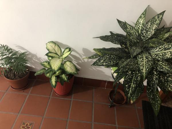 Tengo una palma pequeña en la entrada al apto en un edificio, una hoja se está empezando a secar por el borde, que debería hacer, no tiene corriente de aire, será acaso el riego. y que debo hacer para que la otra planta de hojas de hojas verde con pintas blancas me florezca. Gracias.