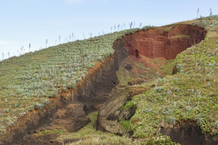 La agresividad de las lluvias, cada vez mayor por los efectos del cambio climático, y la presencia de suelo desnudo, como consecuencia de los cambios de usos del suelo (p.ej.: deforestación), incrementan la erosión hídrica. Algunas de las consecuencias de la erosión hídrica en Guatemala son: